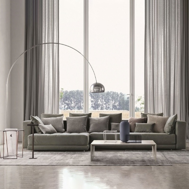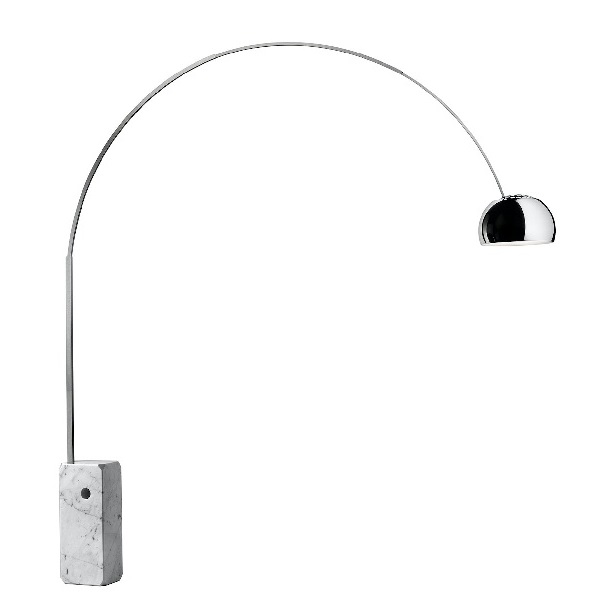 Ikonična stoječa svetilka, ki nudi direktno svetlobo pod nastavljivim aluminijastim senčnikom, ki je s teleskopsko kovinsko roko pritrjen na podstavek iz Carrara marmorja.