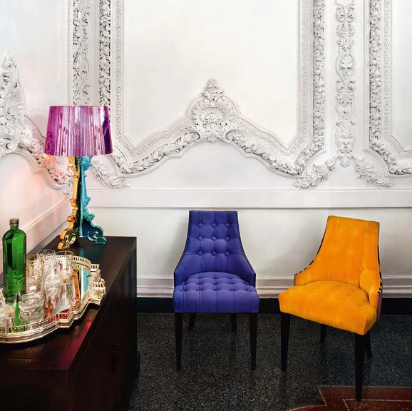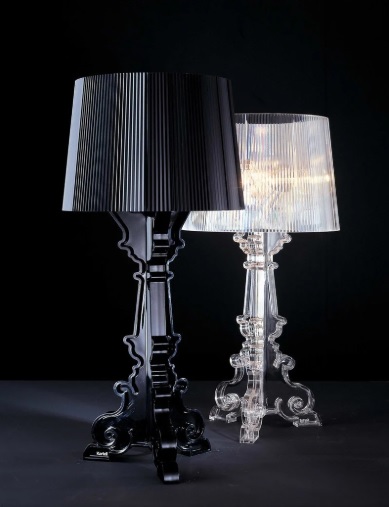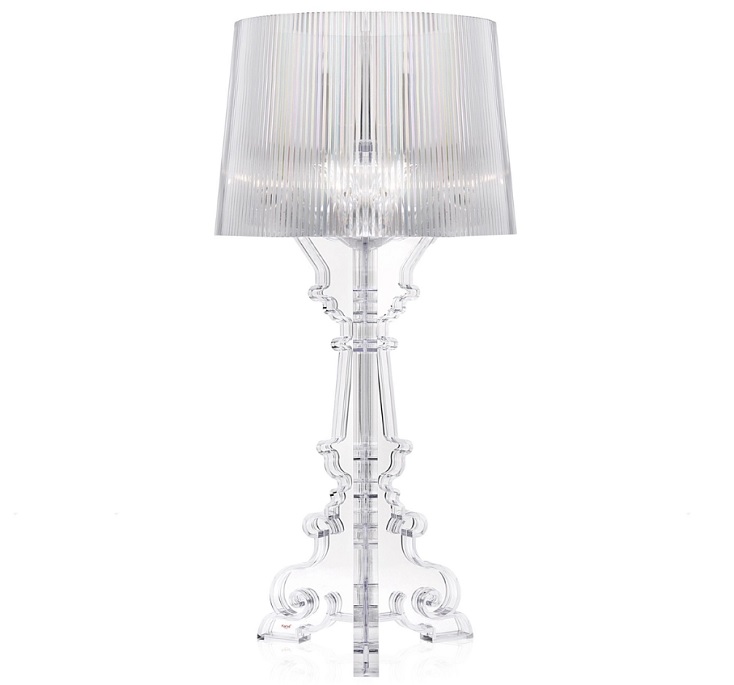 Bourgie združuje klasicizem, bogastvo in tradicijo s tehnološkimi inovacijami. Osnova v baročnem slogu je sestavljena iz treh okrašenih elementov, ki se prepletajo, medtem ko je veliko senčilo ustvarjeno z nagubanim učinkom, ki ob osvetlitvi ustvari množico odsevov. Zahvaljujoč posebnemu sistemu, ki se uporablja za obešanje senčnika, je mogoče doseči tri različne višine, ki jih lahko prilagodite osebnim željam.