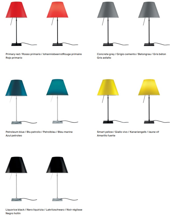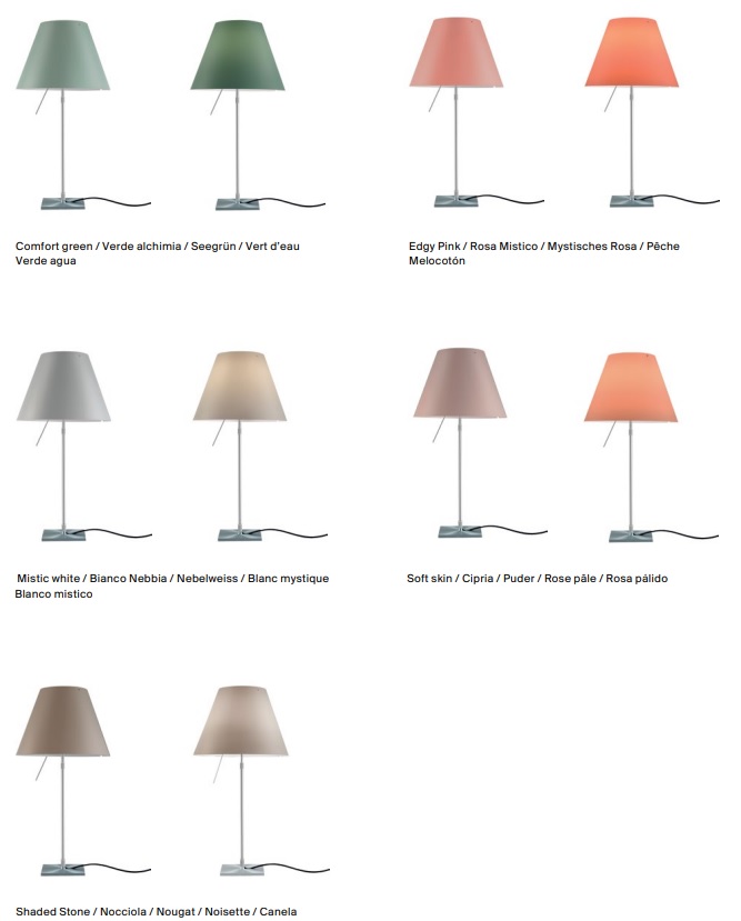 Z mešanjem tradicije in tehnologije Costanza reinterpretira klasično podobo na sodoben način. Izmenljiv senčnik iz polikarbonata oddaja toplo, prijetno svetlobo. Senzorična zatemnilna palica vklopi in izklopi svetilko, pri čemer izmenjuje štiri stopnje jakosti svetlobe.